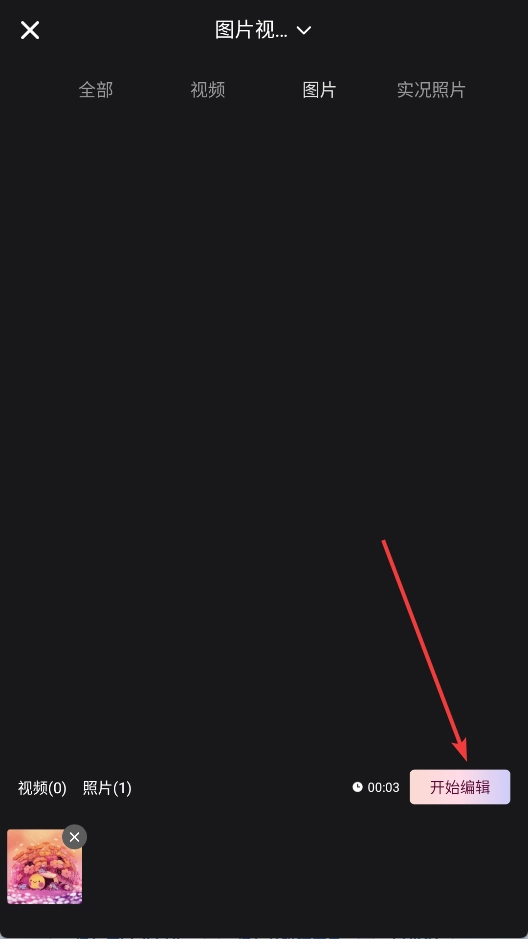 2、选择一张图片,点击开始编辑