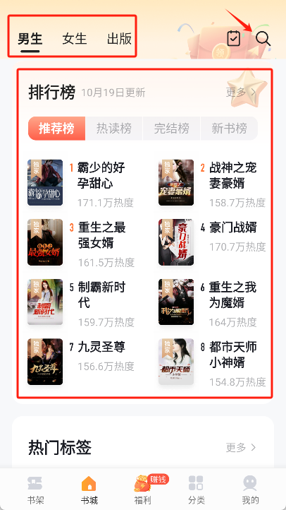 在主界面,您可以通过分类浏览、搜索功能或排行榜这几种方式找到想要阅读的小说。