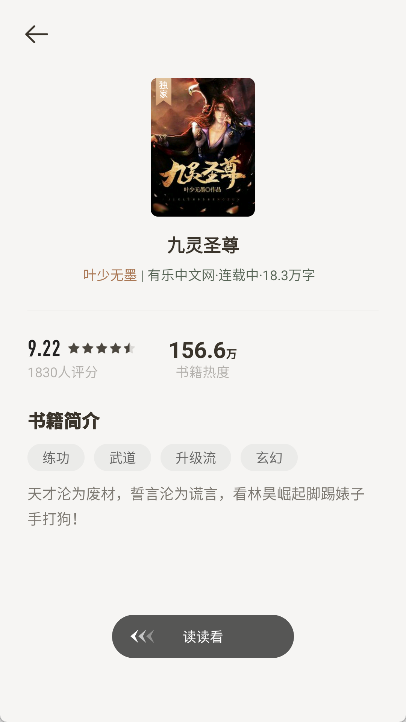 3、找到想收听的小说后,点击其封面就能进入阅读详情页界面。