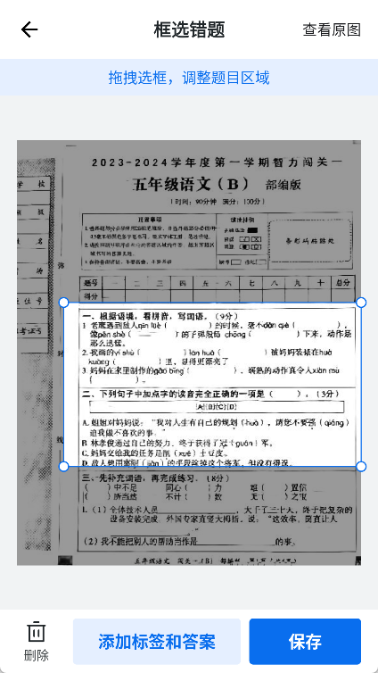 - 错题框选: