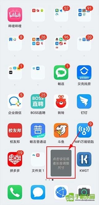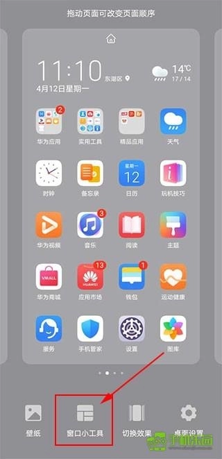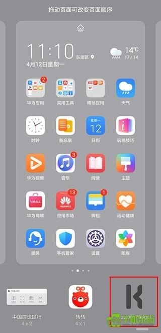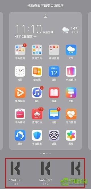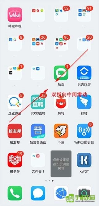 1、这里我以华为手机为例,完成kwgt插件的设置后,在手机桌面上用双指向中间滑动。