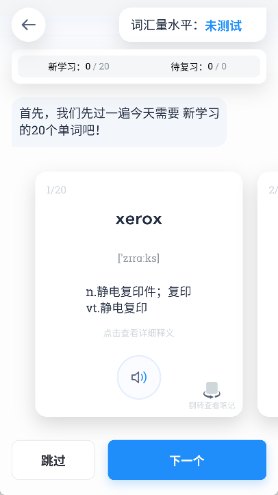 实时更新最新英语词汇,提供涵盖阅读、听力、写作、语法等多维度的学习卡片,借助每日轻量任务助力用户在持续坚持中稳步提升。