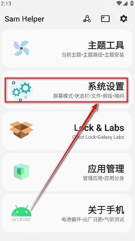 1.打开SamHelper,点击系统设置。