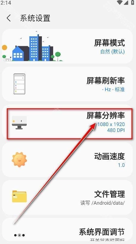 2.点击屏幕分辨率。