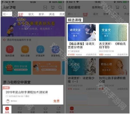 2、在【直播】界面选择对应年级和学科,通过筛选功能找到合适的课程,点击想要报名的课程即可完成报名操作;如果当前没有该年级的课程,还可以前往【精选课程】板块,查找自己需要的课程。