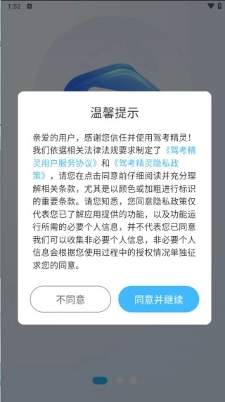 1、新用户第一次打开时会看到温馨提示,点击下方的“同意并继续”按钮即可。