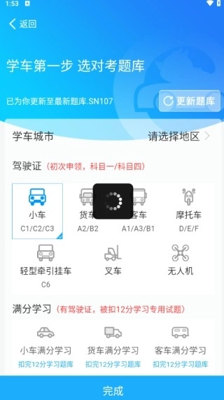 3、进入首页后,您可以选择车型和地区,系统会为您匹配更便捷的题库。