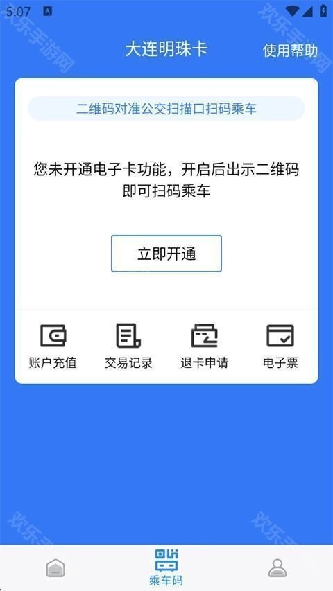 3、点击乘车码时,需要先开通电子卡功能,开通之后出示二维码就能扫码乘坐公交和地铁了。