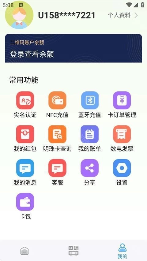 4、点击我的登录账号后,能够查看二维码账户余额以及其他更多服务内容。