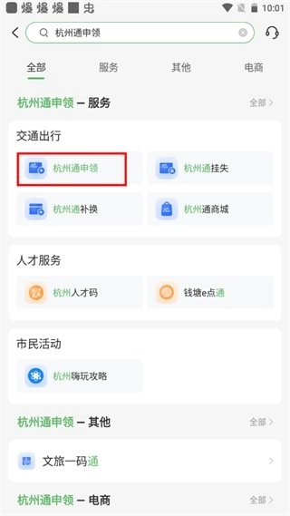 2、选择“杭州通申领”。
