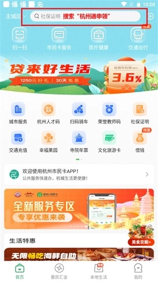 1、市民卡首页搜索“杭州通申领”。