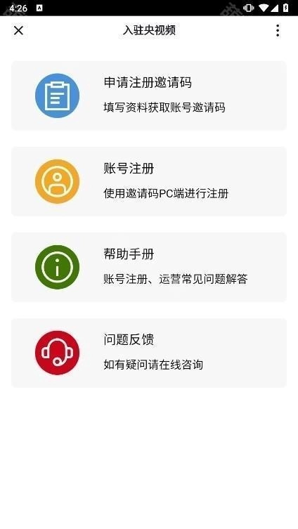 查看入驻央视频指引,查看入驻要求,进行入驻申请。