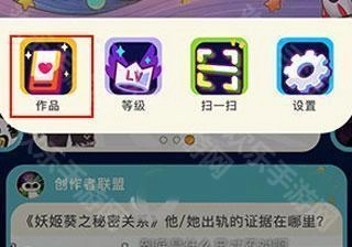 2、选择“作品”。