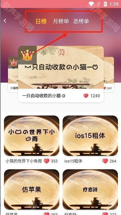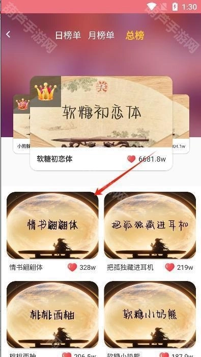 2、这里的字体榜单分为日榜、月榜和总榜单