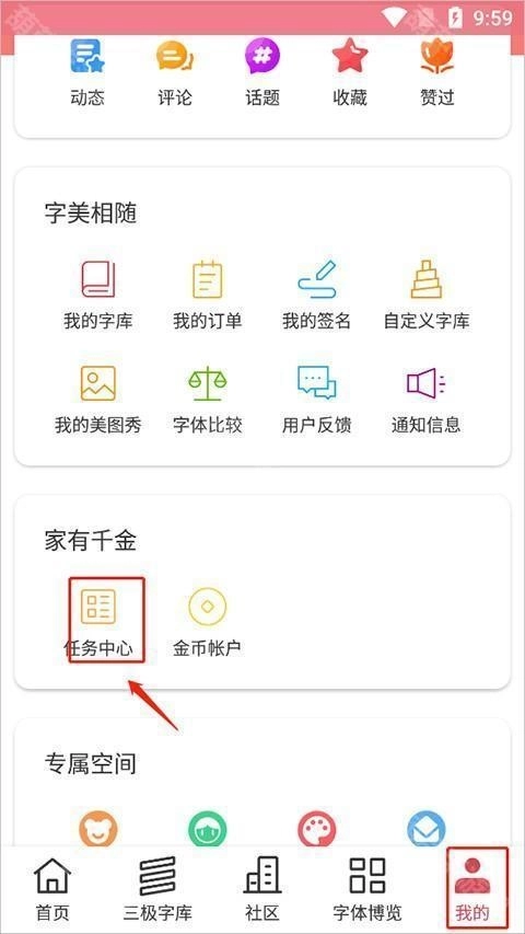 1、在“我的”页面选择“任务中心”。