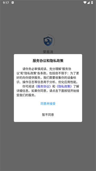 1、软件安装完成后打开,若出现弹窗提示,阅读相关内容后直接点击“同意并接受”按钮。