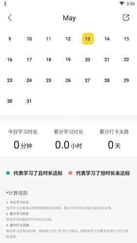 2、每日学习时长累计达到20分钟,系统即判定该日学习打卡成功。