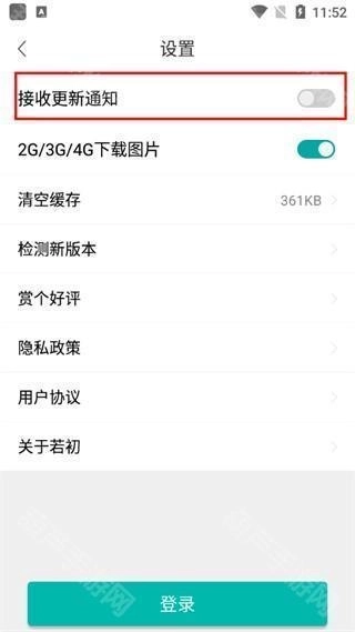 4、点击【接收更新通知】右侧按钮进行关闭。