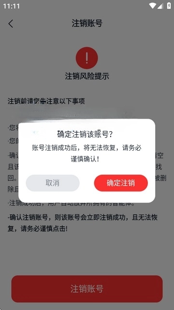4、然后根据流程详细浏览注销账号的风险提示信息。
