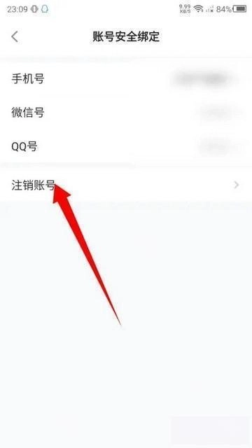 3、进入账号安全绑定页面,点击注销账号。