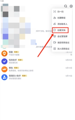 3、既能够新建空白内容,也可以选用模板;在内容输入完毕后,点击右上角的三个点图标。