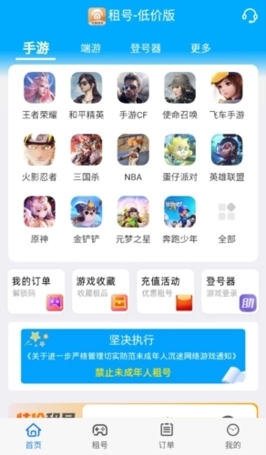 5、账号租号:高品质大神账号随租随玩,租号简单
