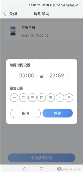 3、选好禁网时间后,点击弹窗右下角的“保存”按钮就可以了。