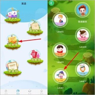 2、进入英语版块后,可任选其中一个内容打开,接着点击对应宝宝学习的年龄段选项。