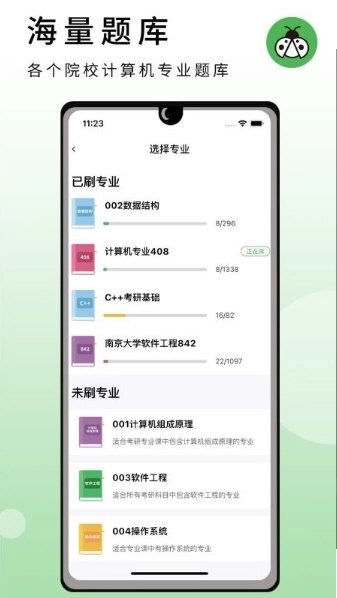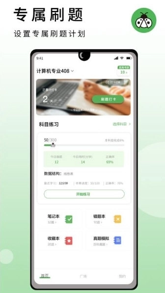 码虫刷题是南京慕师教育科技有限公司为用户打造的实用在线刷题平台,平台内拥有丰富的题库资源,覆盖多学科学习需求,助力用户提升知识水平。在码虫刷题中,用户可以与其他学习者共同参与每日打卡活动,通过排行榜直观了解自己和他人的刷题进度。同时,软件支持错题记录功能,帮助用户标记易错知识点,以便后续针对性复习。此外,用户还能根据自身情况制定个性化刷题计划,按计划完成每日任务,逐步接触更多题型,让刷题过程更高效、更轻松。平台上还有大量用户分享的刷题笔记,用户可借此与其他学习者交流学习经验,进一步提升学习效果。需要提升刷题效率的考生以及对此感兴趣的小伙伴,不妨来体验一下吧!