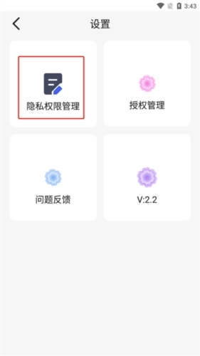 2、选择【隐私权限管理】选项,点击该选项进入下一个页面。