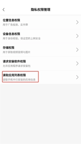 3、选择【读取应用列表权限】这一选项,点击该选项进入设置页面即可。