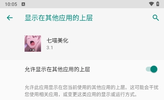 2、安装完成后,按照提示开启“显示在其他应用的上层”权限。