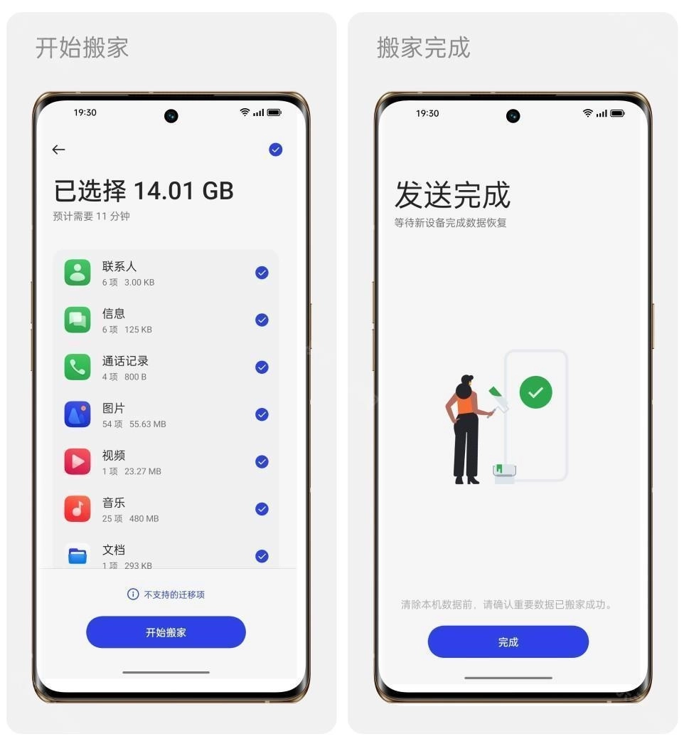 手机搬家oppo是一款专为OPPO手机设计的系统工具类应用,核心功能是实现一键换机。它功能全面,能为用户提供便捷体验,界面也十分简洁。该软件可快速迁移手机上的各类数据,支持的数据类型丰富多样。迁移过程无需数据线,也不会消耗流量,能让用户快速完成换机操作,因此吸引了众多用户使用并体验其带来的便利。