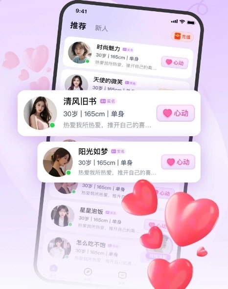 1、海量用户资源,精准智能推荐:基于兴趣偏好进行精准匹配,每日为您推送契合的交友对象,助您不错过每一次心动的可能。