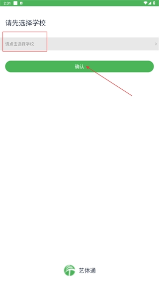2、进入学校选择页面后,点击“请点击选择学校”的选项栏,从中挑选对应的学校,接着点击【确认】按钮,即可完成学校选择操作。
