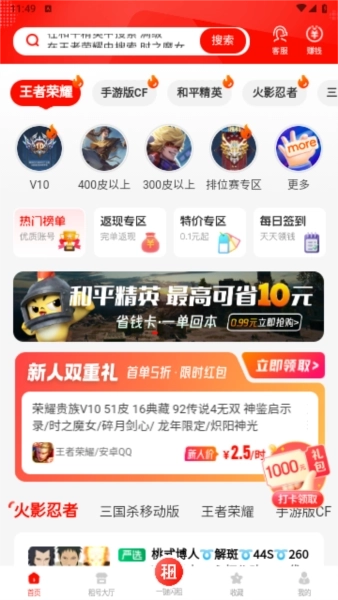 1.游戏账号租赁:提供各类热门游戏账号的租赁服务,让用户无需购买游戏账号,就能临时使用他人账号体验游戏。