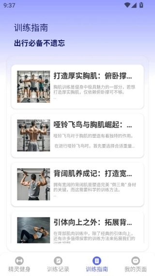 4、个性化定制的健身指南,搭配丰富实用的训练技巧与视频教程,从基础入门动作到高阶复合训练,为您提供全方位的专业指导,助力您开展安全且高效的训练。