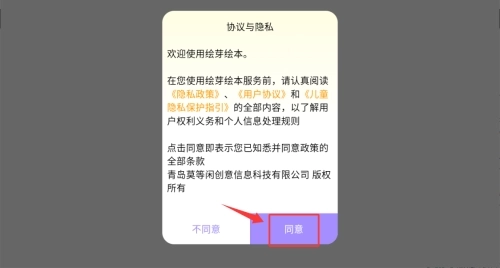 1、首次打开应用时,请在弹出的协议与隐私提示框中点击同意,以进入应用。