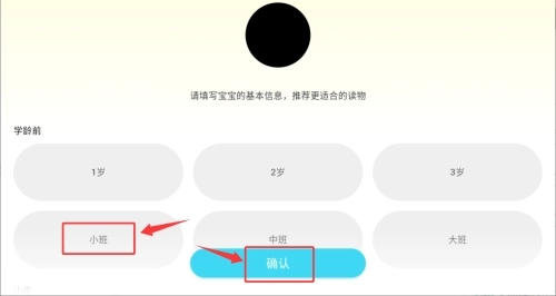 2、填写宝宝所处阶段如小班并确认信息。