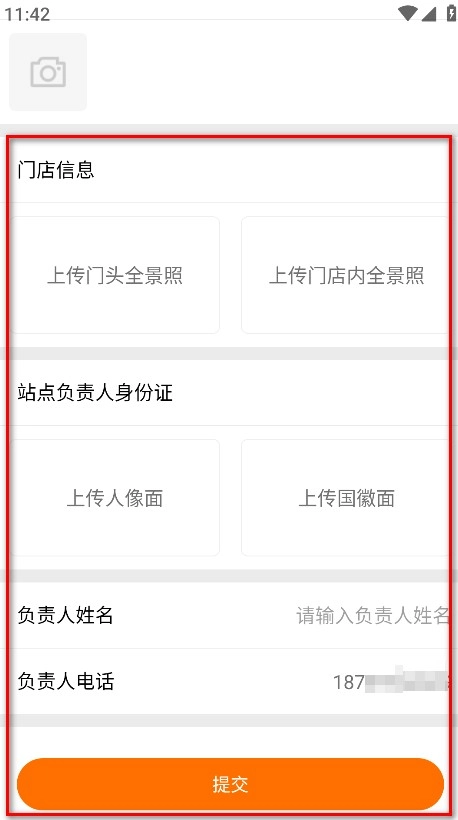 5.请上传门店信息照片以及站点负责人身份证的正反两面照片,接着输入负责人姓名,最后点击提交按钮就可以了。