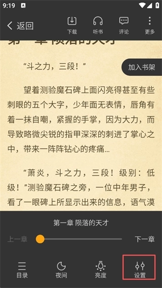 定时听书功能全新上线,多种音色可供选择,全本缓存后无网络也能使用。为您带来淋漓尽致的阅读体验!多种翻页设置,助您看书翻页行云流水。页面设计简洁,夜间护眼模式可一键切换。
