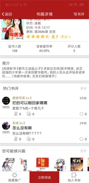 1、首先在手机上打开这款软件,接着进入书城挑选自己心仪的小说,然后点击立即阅读按钮开始阅读。