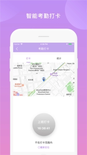 一键打卡功能,可自动记录上下班时间,省去员工打卡时的等待环节,让打卡这件事变得轻松又愉快。