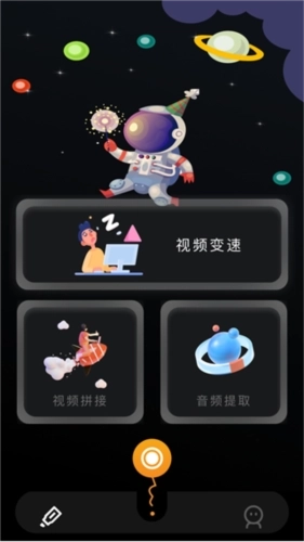 5、点击最左侧的画笔图标,可展开更多功能选项,其中包含视频变速、视频拼接以及音频提取等功能。