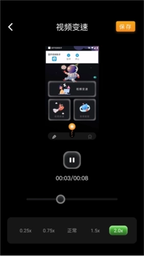 6、视频变速功能的操作很简单,只需导入需要编辑的素材,接着在下方选择你想要的速度就行。