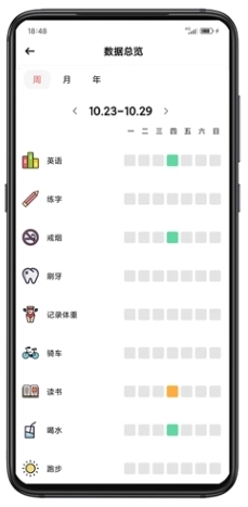 数据总览:进入数据总览界面查看各种目标的打卡数据,了解自己的任务完成状态。