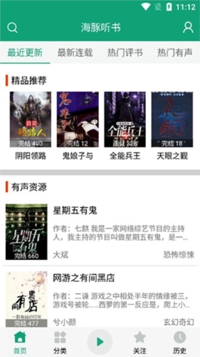 1、请安装本站提供的海豚听书应用,打开软件后,你会看到平台推荐的各类书籍。