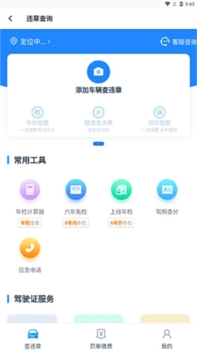 驾照查询栏和违章查询栏并排设置,无论想查询哪一项,只需一键点击即可快速切换查询界面。