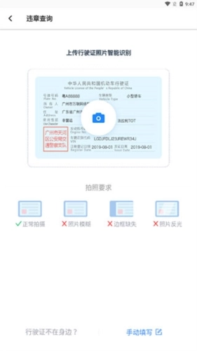 4、支持行驶证智能识别上传,也可手动填写信息,完成绑定后就能进行后续操作