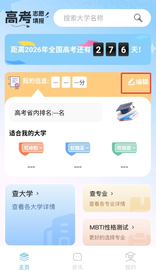 2、在主页功能区,点击编辑按钮就能进入志愿填报模拟系统。